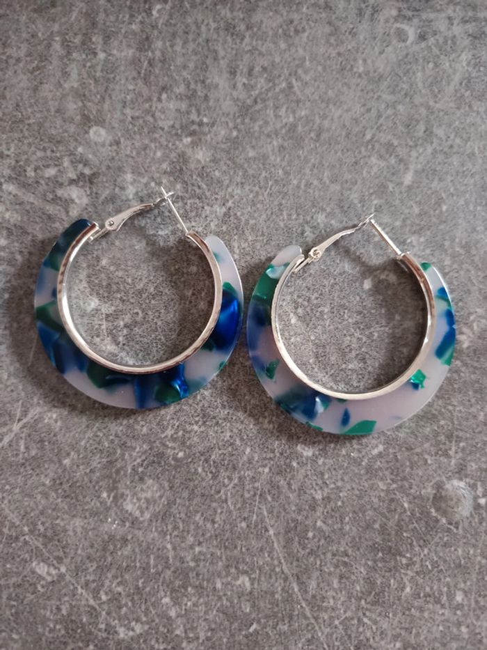 Boucles d'oreilles anneaux bleus et vert - photo numéro 1