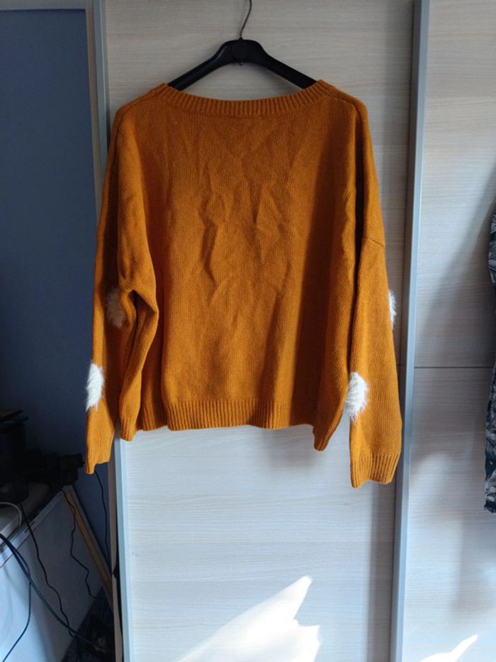 Pull moutarde à pompon blanc, EXCELLENT état, peu porté ! Taille Unique #vetementfemmeMjustine182129 #vetementfemmeLjustine182129