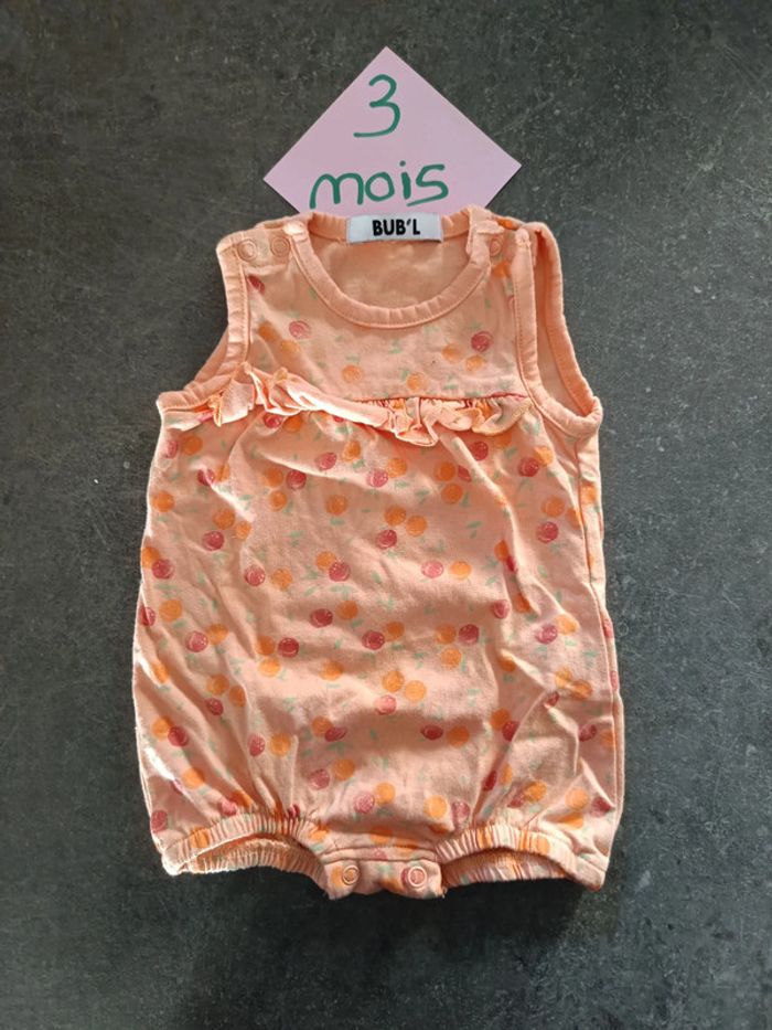 Barboteuse orange avec motifs, NEUVE jamais portée ! Taille 3 mois #vetementbebefille3moisjustine182129