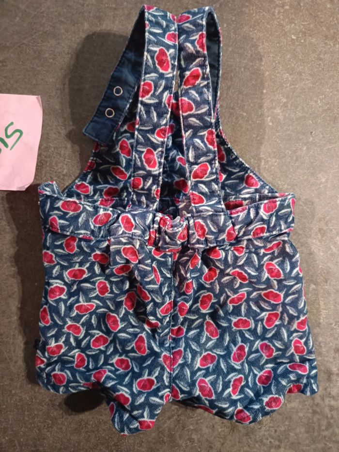 Salopette short couleur bleue, motifs fleurs rouge, EXCELLENT état, porté que 2 fois ! Taille 3 mois #vetementbebefille3moisjustine182129