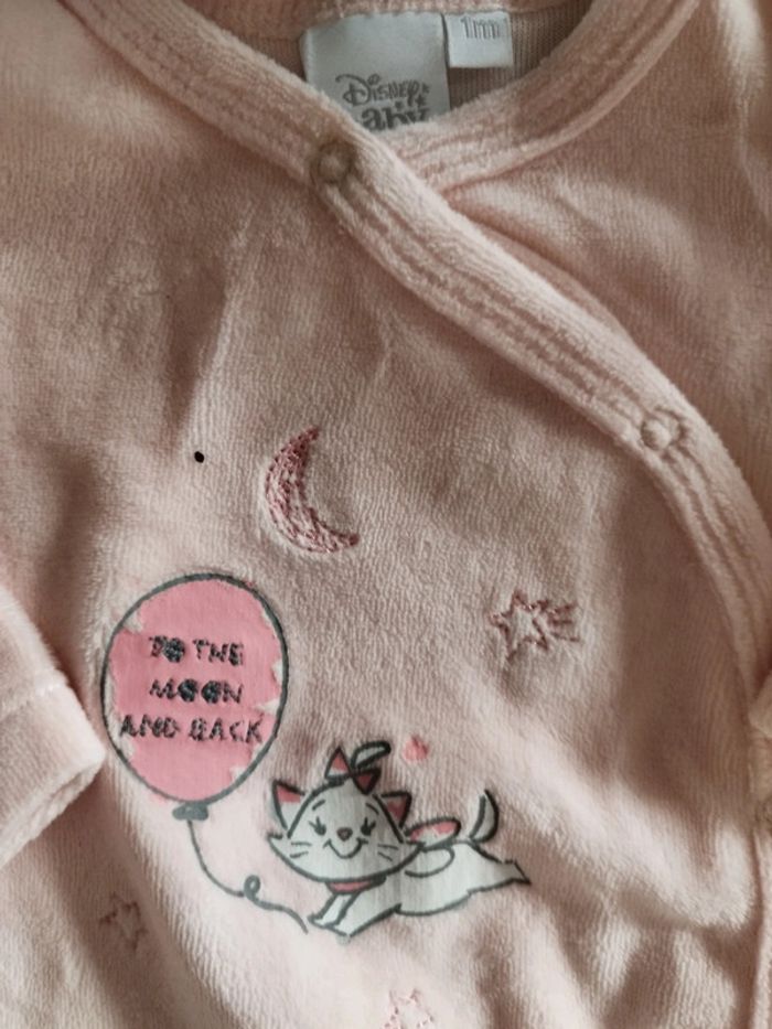 Pyjama rose en velours, Marie des Aristochats, Ouverture sur le devant par pressions NEUF jamais porté juste lavé ! Taille 1 mois #vetementbebefille1moisjustine182129
