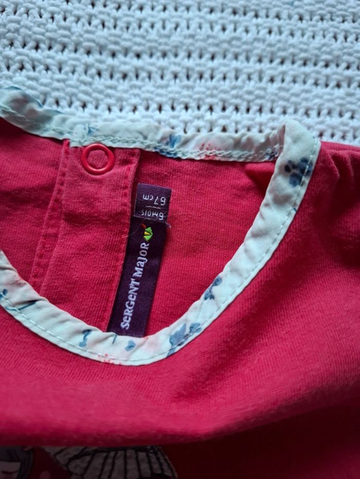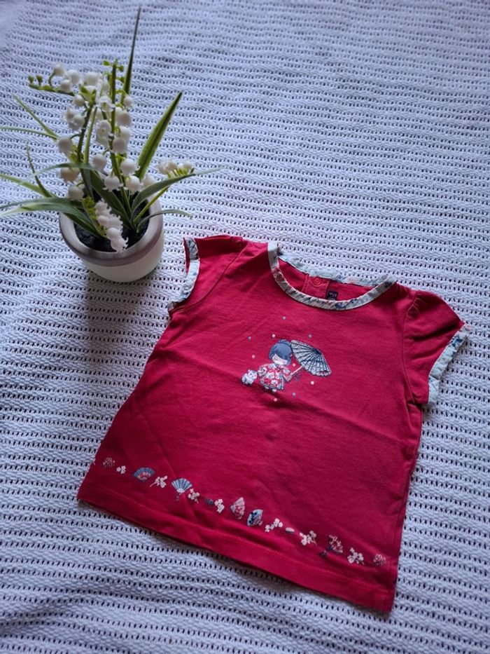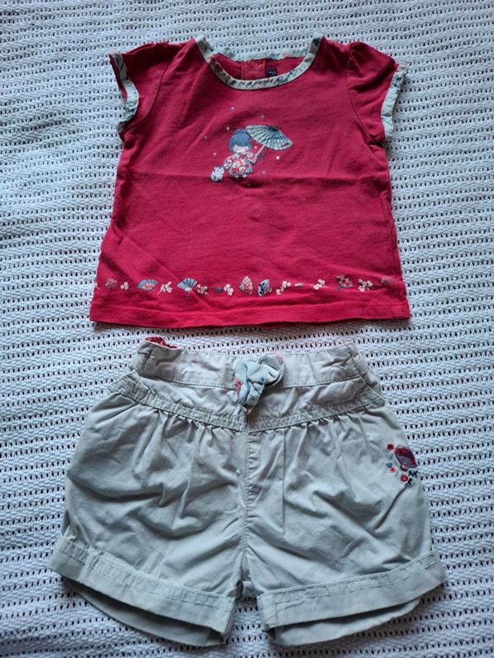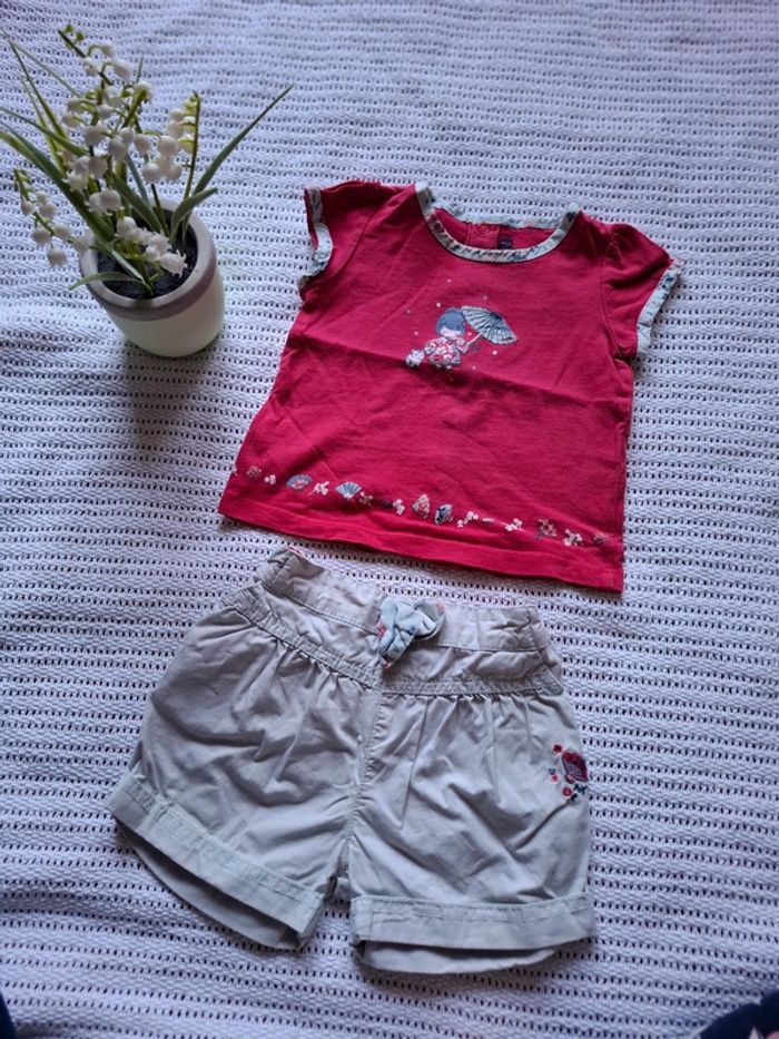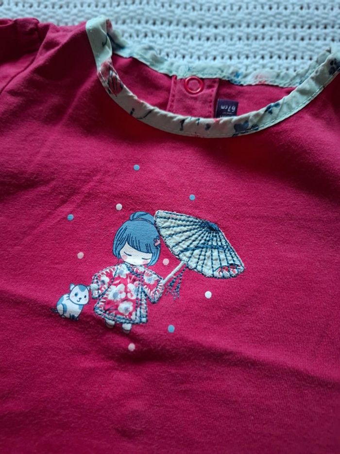 Porté , très bon état... Dessin unecpetite chinoise avec son parapluie... Couleur rose foncé(le haut) et beige (le bas) #voehele66vetements6-9mois
