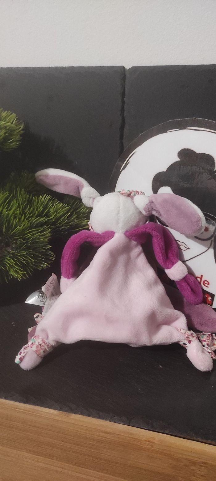 doudou et compagnie cerise dc2701 lapin blanc violet attache sucette Rose Fleur - photo numéro 1