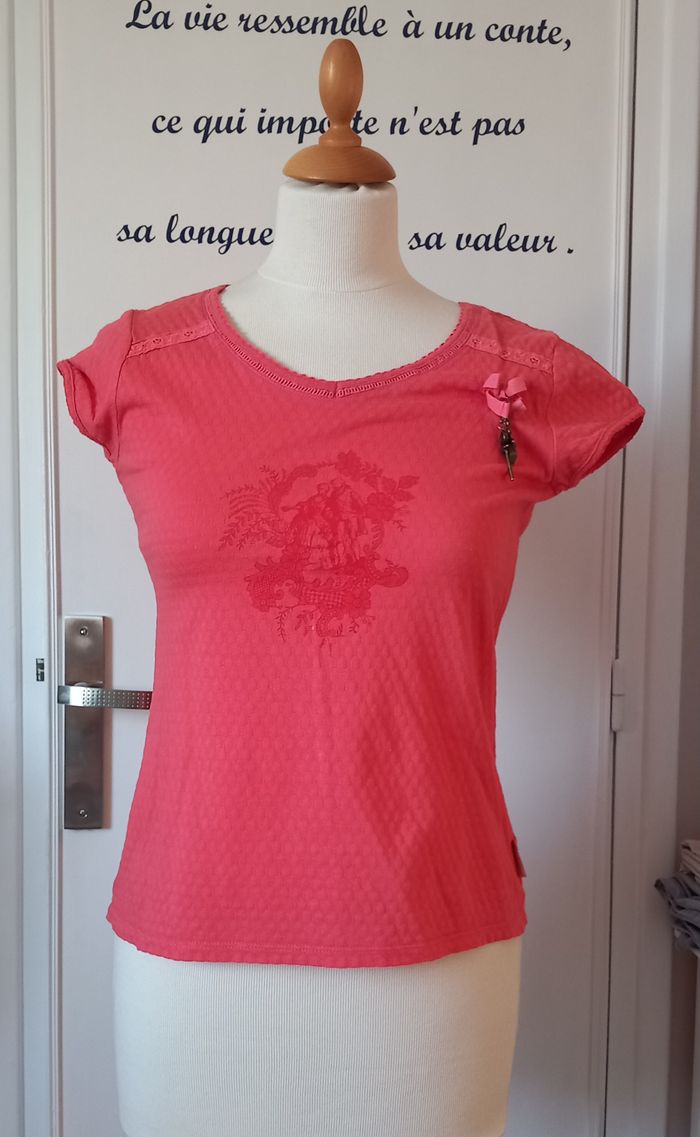 t-shirt TERRE DE MARINS rose corail, taille S, bon état
