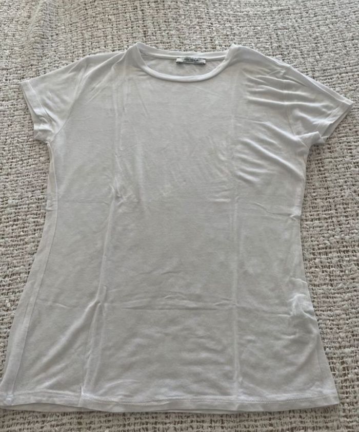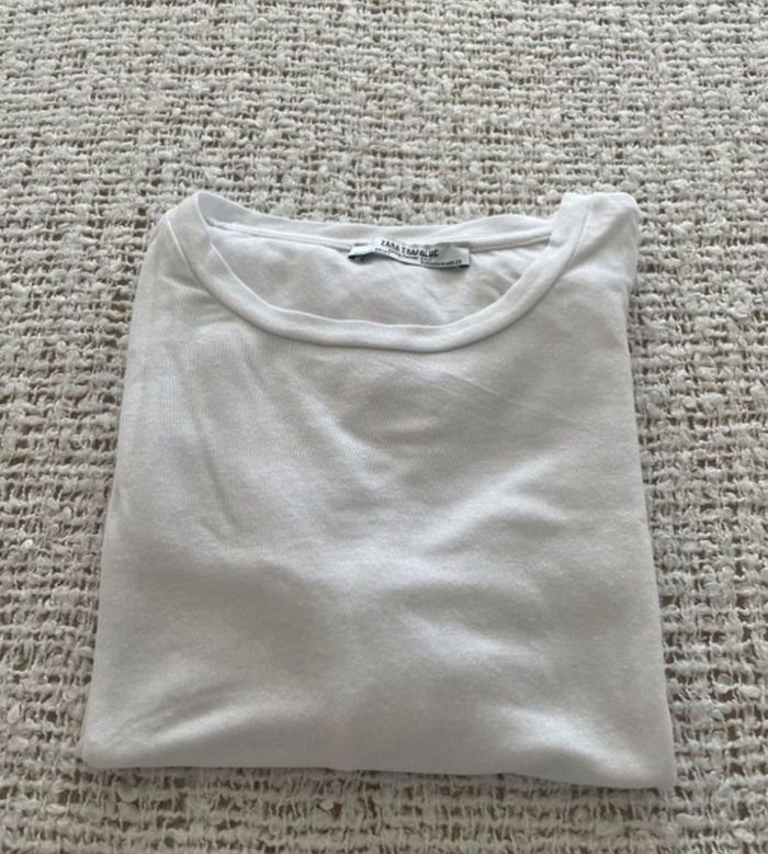 Teeshirt blanc «  Zara» taille M, porté 1 fois TBE Largeur épaules 37 cm Largeur (mesure prise sous les aisselles) 43 cm Longueur 61 cm #sandra13190femmestailleM