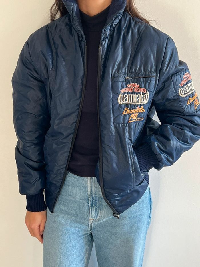 Magnifique bombers Champion vintage ski world séries taille S couleur marine foncé