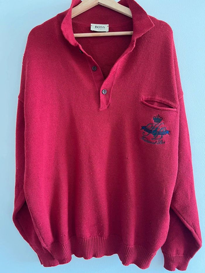 Pull Hugo Boss vintage petite poche avant taille XXL couleur rouge