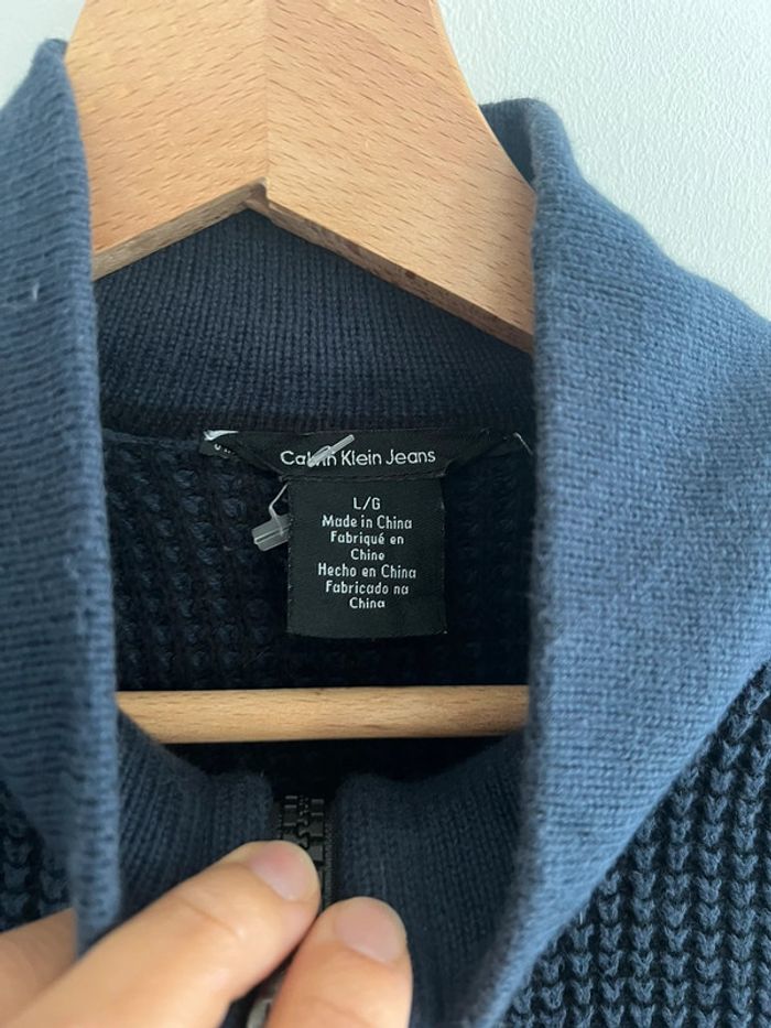 Pull / Veste torsadé Calvin Klein vintage taille L couleur bleu marine. - photo numéro 7