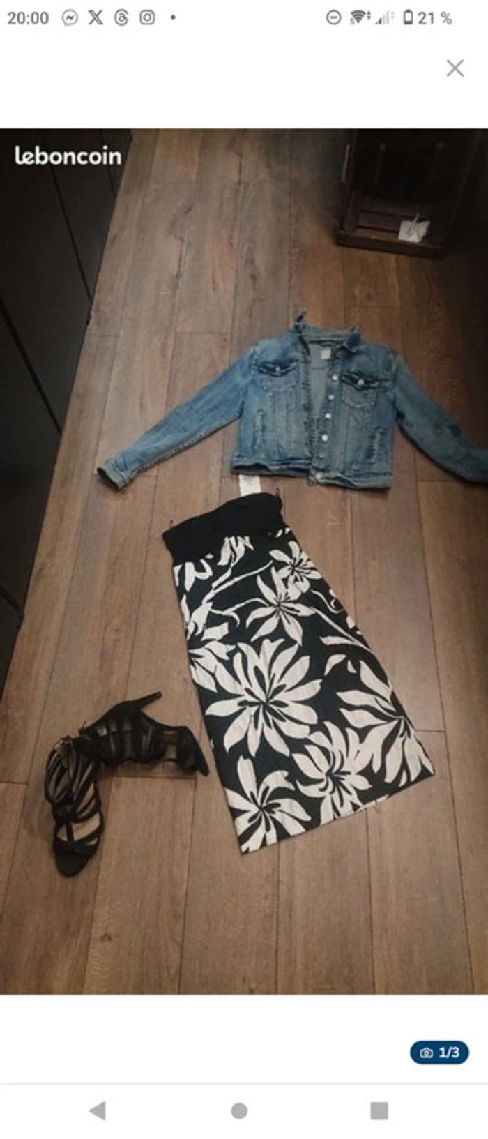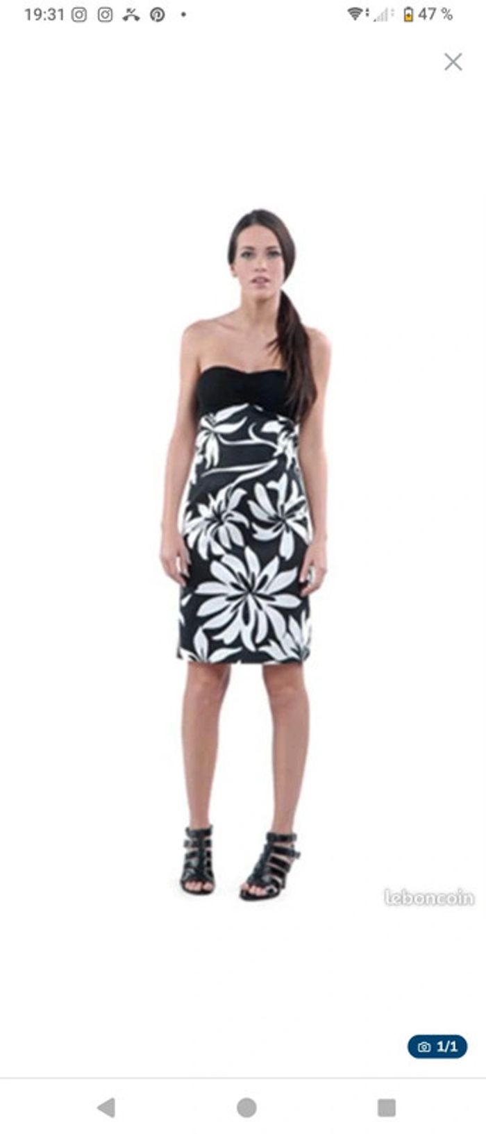 Jamais portée Noire a fleurs blanches Parfait pour cet été, mariage, baptême, gala