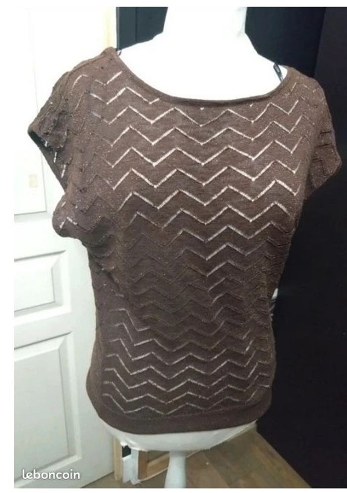 Marron pailleté Maille ajourée marqué taille 34 mais taille grand Coupe chauve souris Parfait pour cet été parfait pour travail, soirée, cocktail, reveillon, nouvel an, noel, saint valentin, été, vacances Idée cadeau de noel, cadeau de saint valentin, cadeau d'anniversaire, cadeau fetes des meres