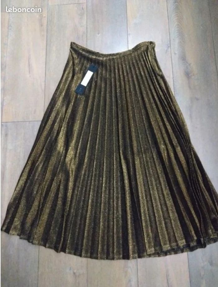 Jupe longue plissée doré cuivre neuve school rag t 38 - photo numéro 2