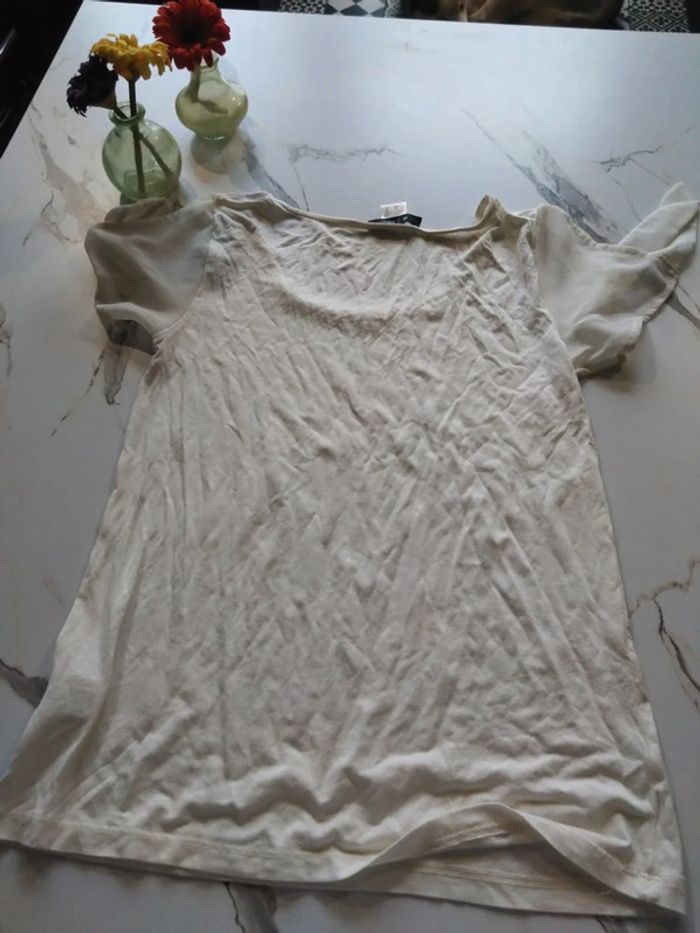T shirt manches courtes Manches en tissu transparent Col rond Jamais porté Parfait pour cet été, baptême, mariage, travail, vacances...