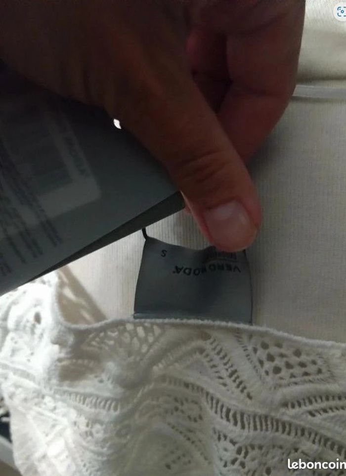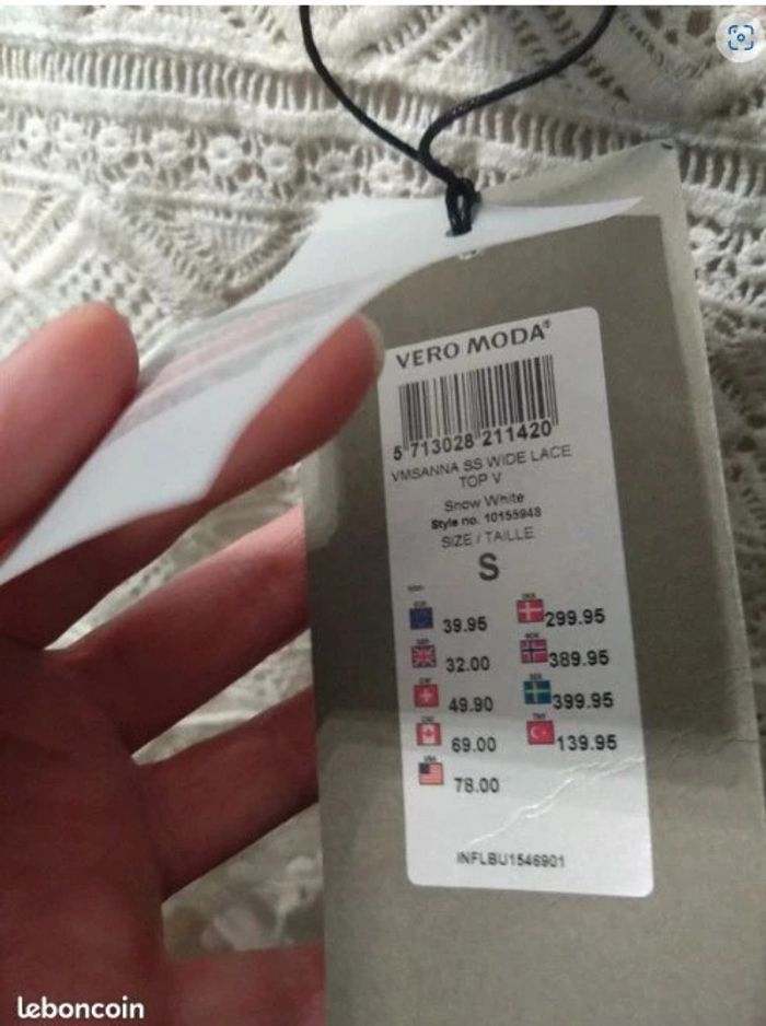 Encore étiqueté Blanc Grosses mailles ajourées Franges Manches courtes Style bohème hippies style crochet macramé Marque Véro Moda