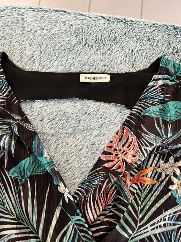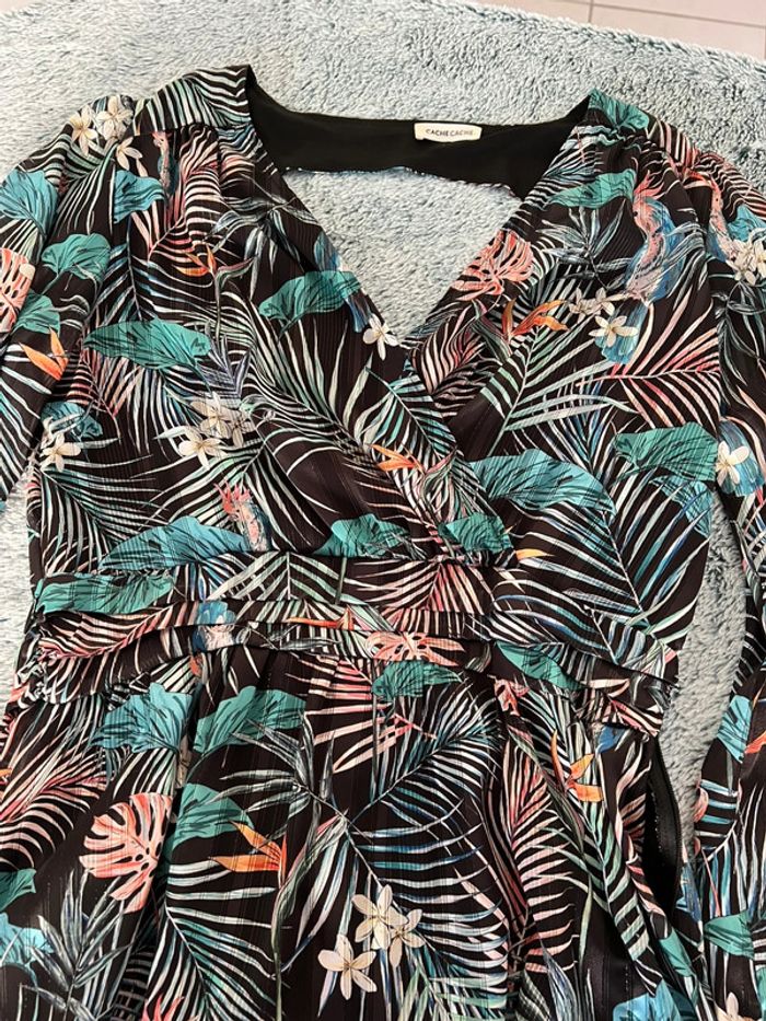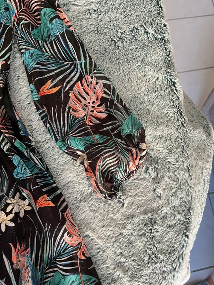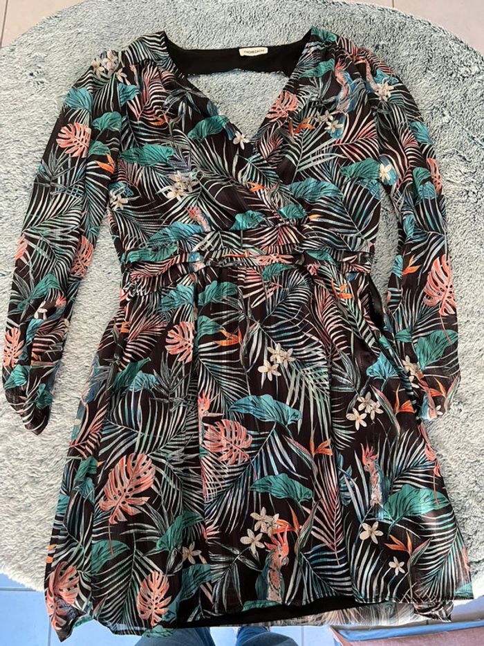 Robe dos nu Motif tropicale Manche bouffante Porté 2 fois Taille 38