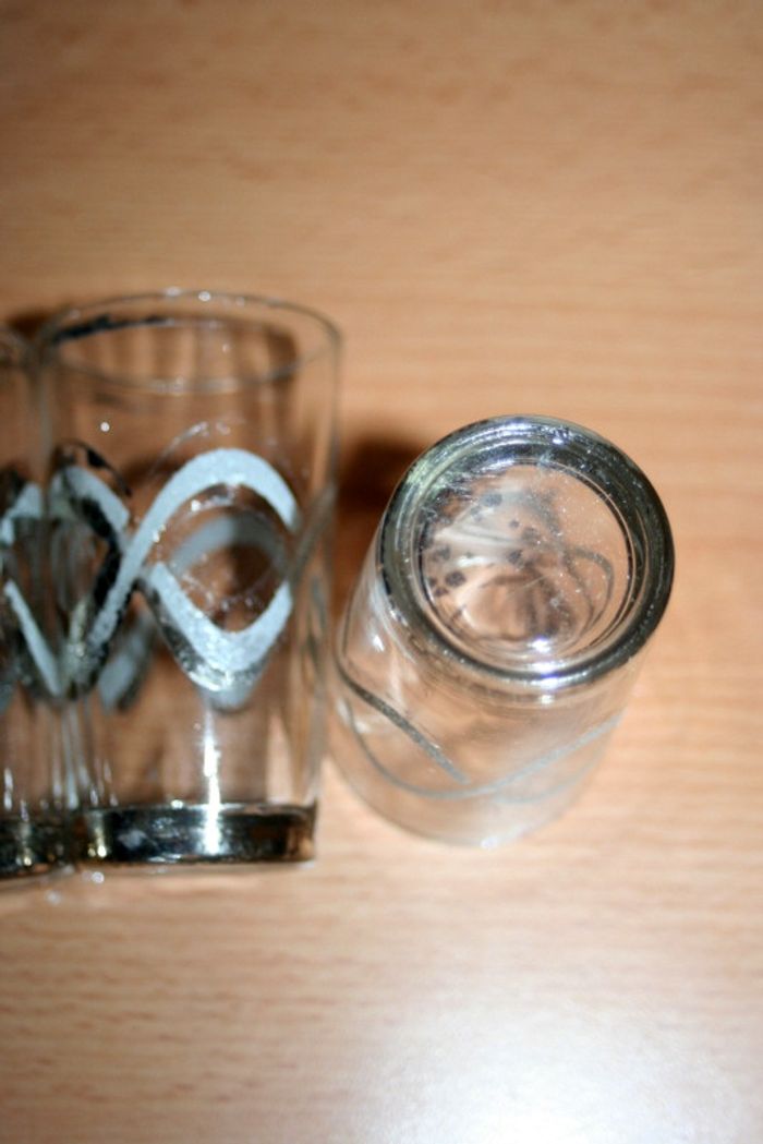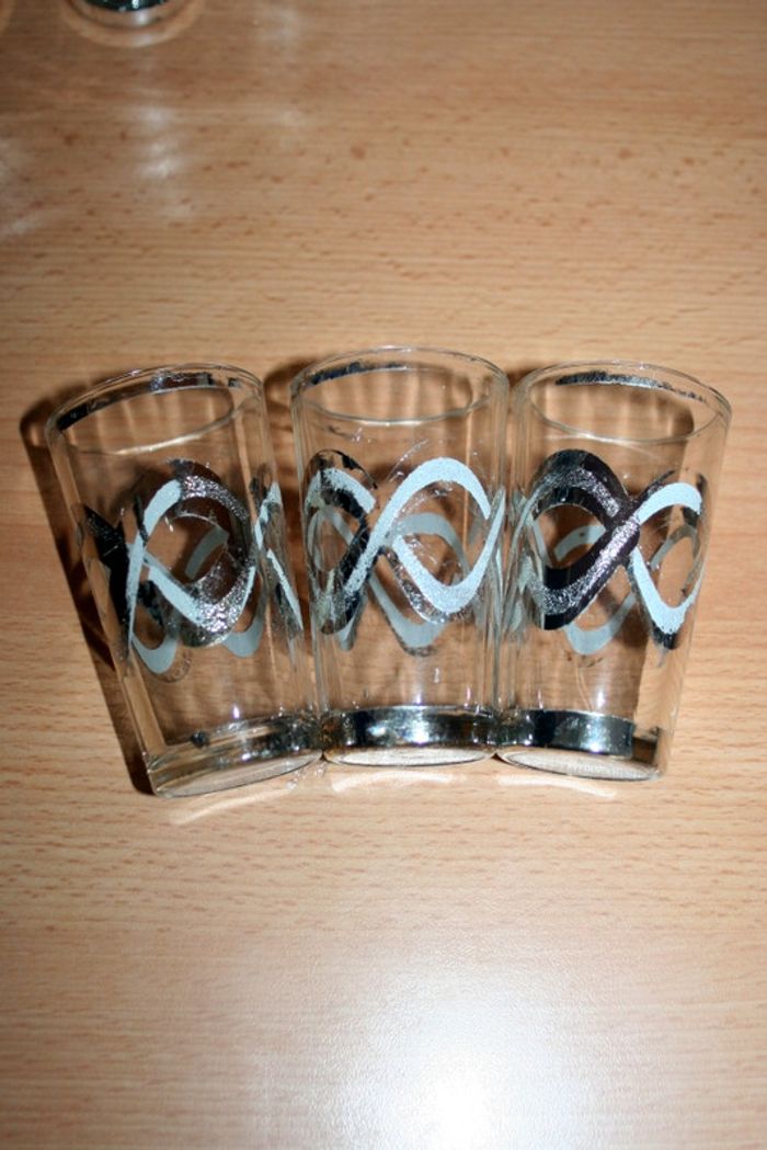 Lot de 20 verres à thé avec ornement argenté, 8.5cm de hauteur, 1.850kg. 3 dont les ornements sont passés par le lavage cf photos.