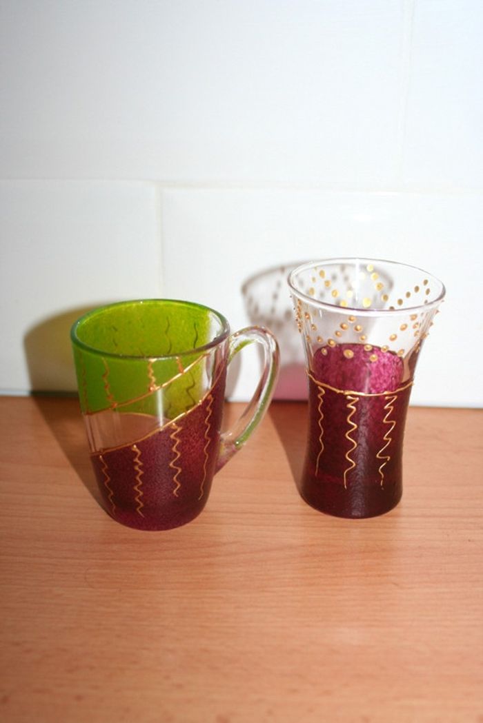 Lot de 2 petits verres ornementés, 7.5cm pour le verre avec la anse et 8.5cm pour le verre évasé, 200g