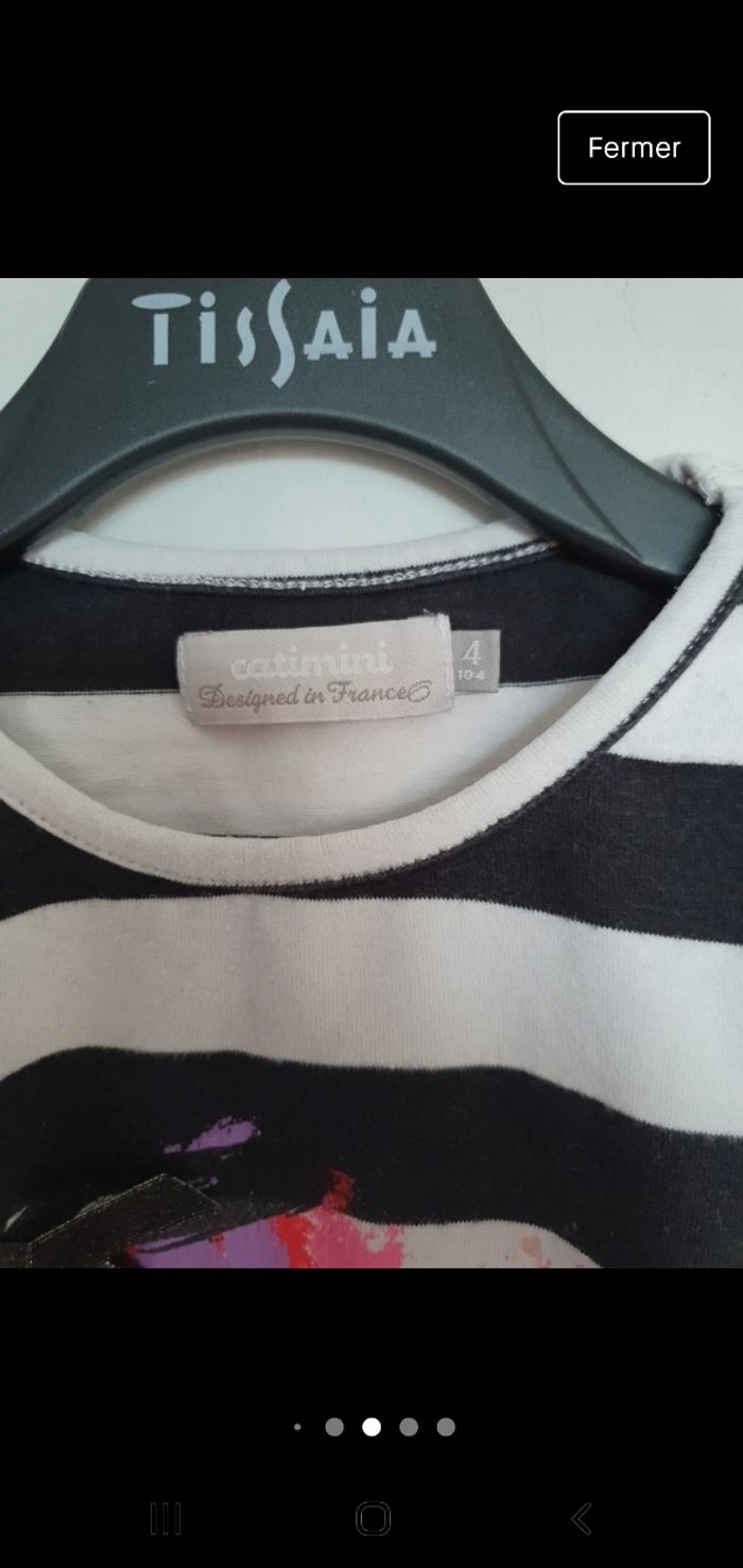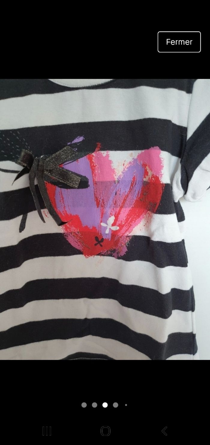 Tee-shirt rayures noires et blanches manches courtes bouffantes dessin coeur 4 ans catimini - photo numéro 6