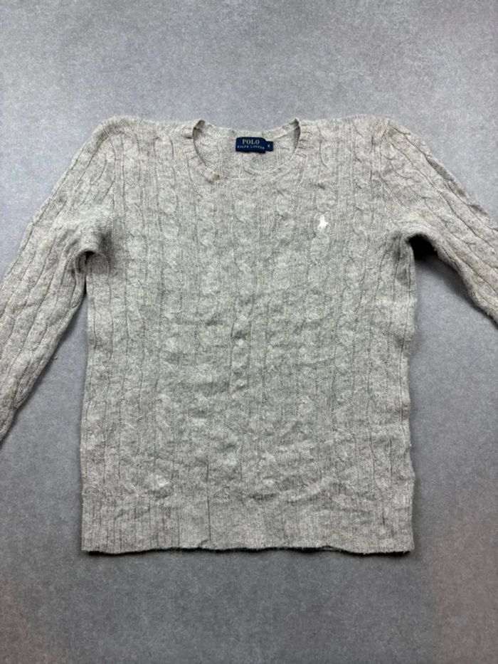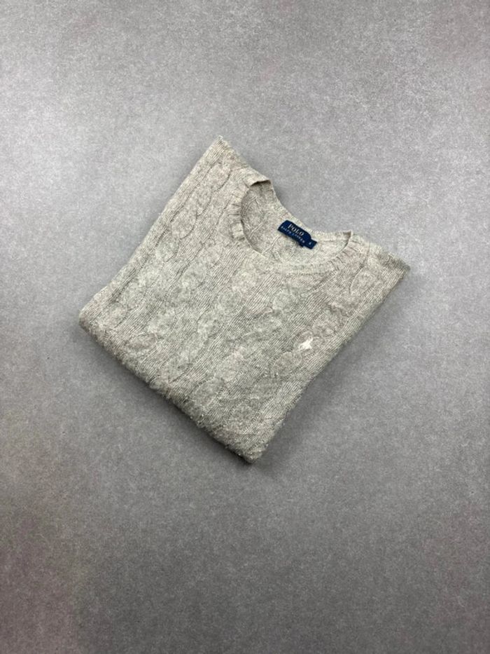Pull d’hiver torsadé en maille Ralph Lauren gris en laine et cachemire taille S - photo numéro 1