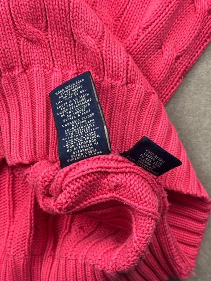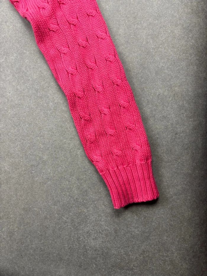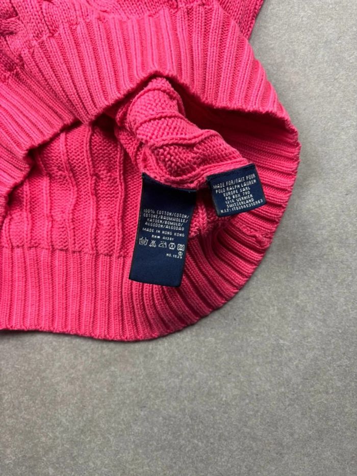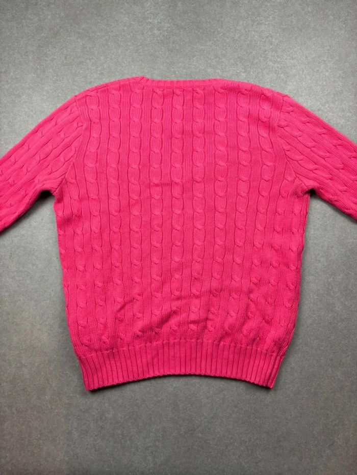 Pull d’hiver torsadé en maille Ralph Lauren rose logo blanc col V taille L femme - photo numéro 10