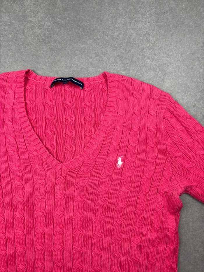 Pull d’hiver torsadé en maille Ralph Lauren rose logo blanc col V taille L femme - photo numéro 5