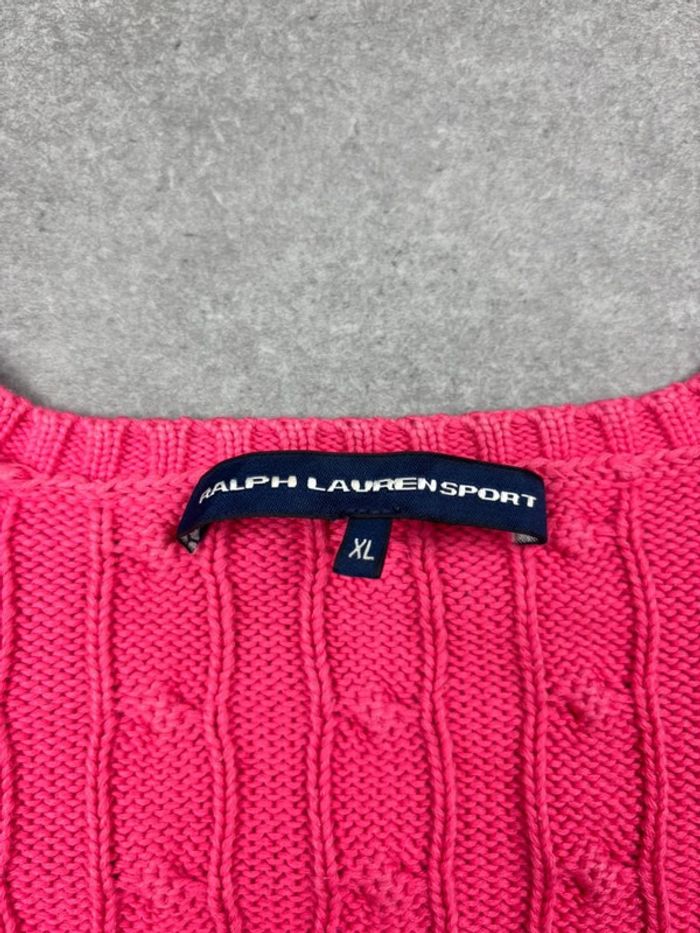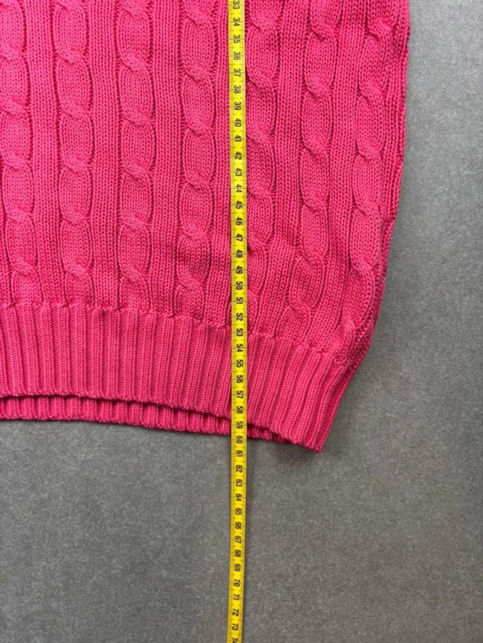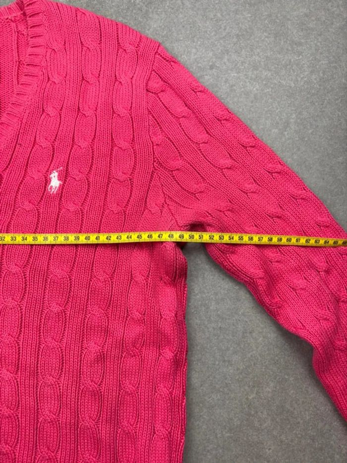 Pull d’hiver torsadé en maille Ralph Lauren rose logo blanc col V taille L femme - photo numéro 11