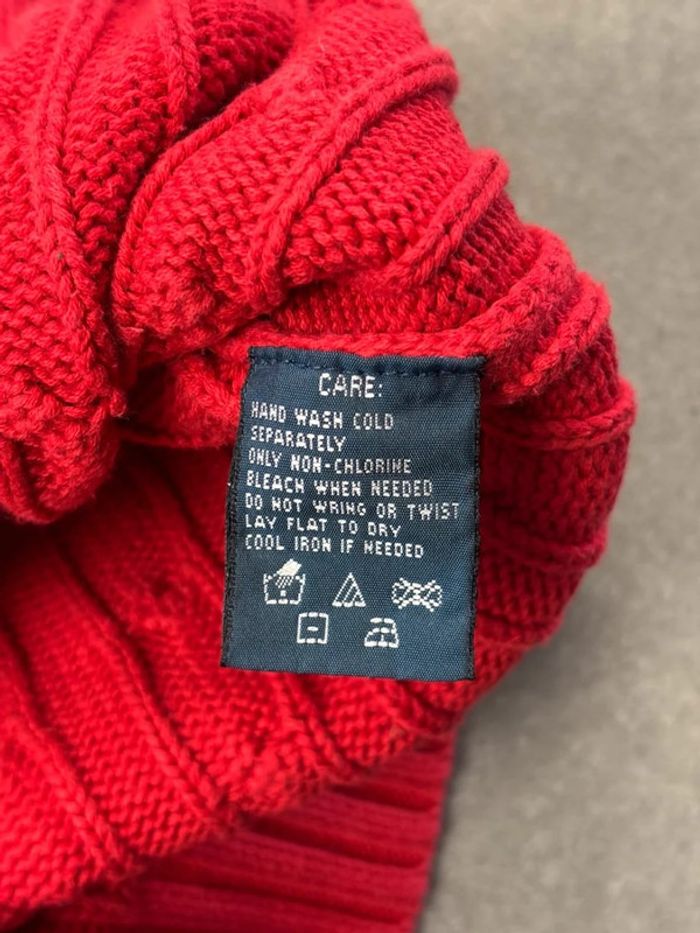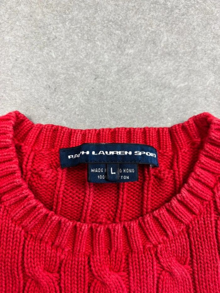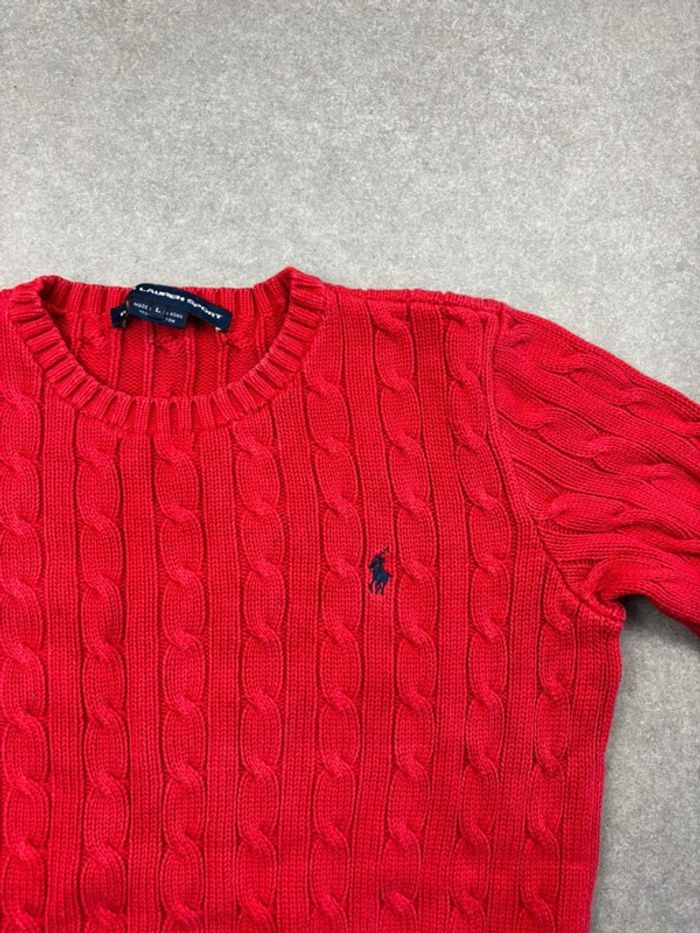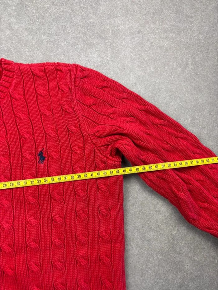 Pull d’hiver torsadé en maille Ralph Lauren rouge col rond taille S - photo numéro 11