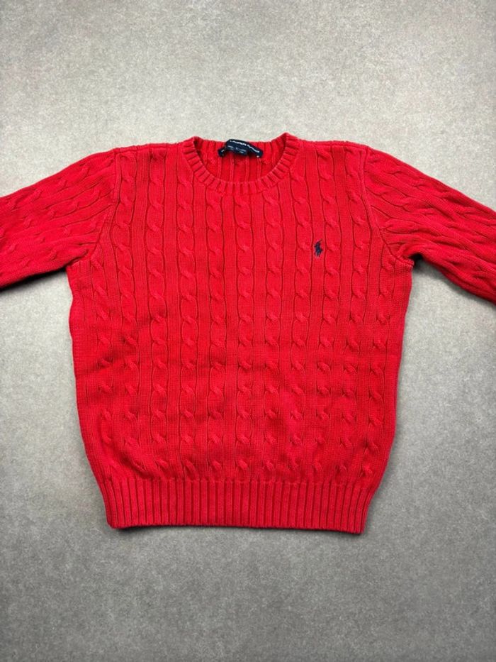 Pull d’hiver torsadé en maille Ralph Lauren rouge col rond taille S - photo numéro 1
