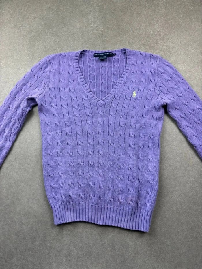 Pull d’hiver torsadé en maille Ralph Lauren col V violet Lila taille L femme - photo numéro 1