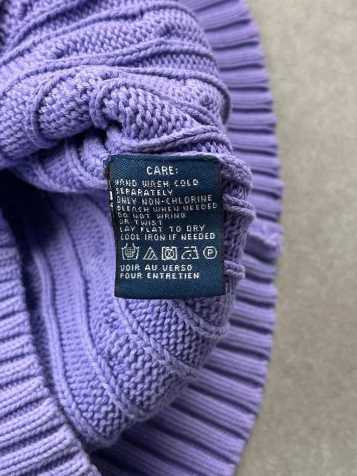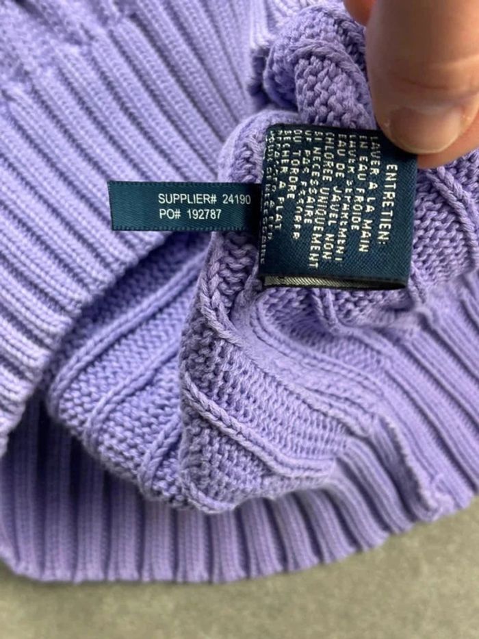Pull d’hiver torsadé en maille Ralph Lauren col V violet Lila taille L femme - photo numéro 9