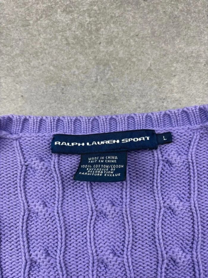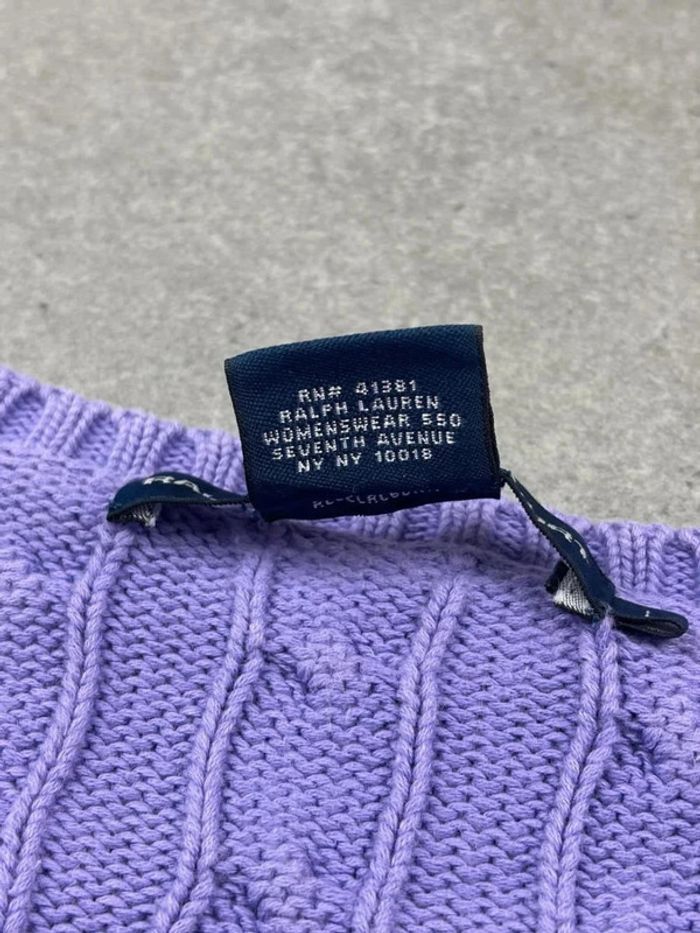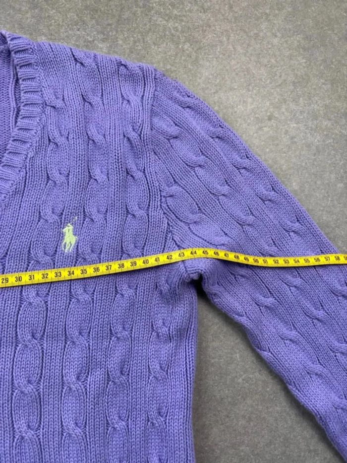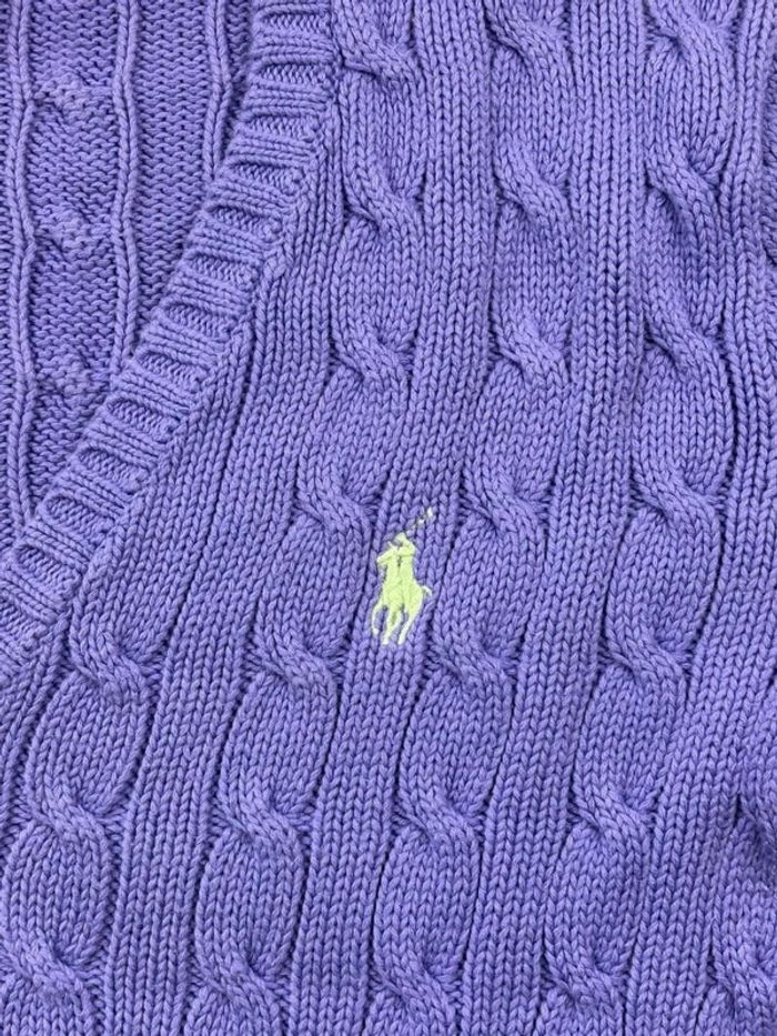 Pull d’hiver torsadé en maille Ralph Lauren col V violet Lila taille L femme - photo numéro 12