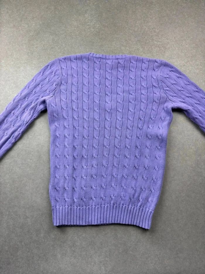 Pull d’hiver torsadé en maille Ralph Lauren col V violet Lila taille L femme - photo numéro 6