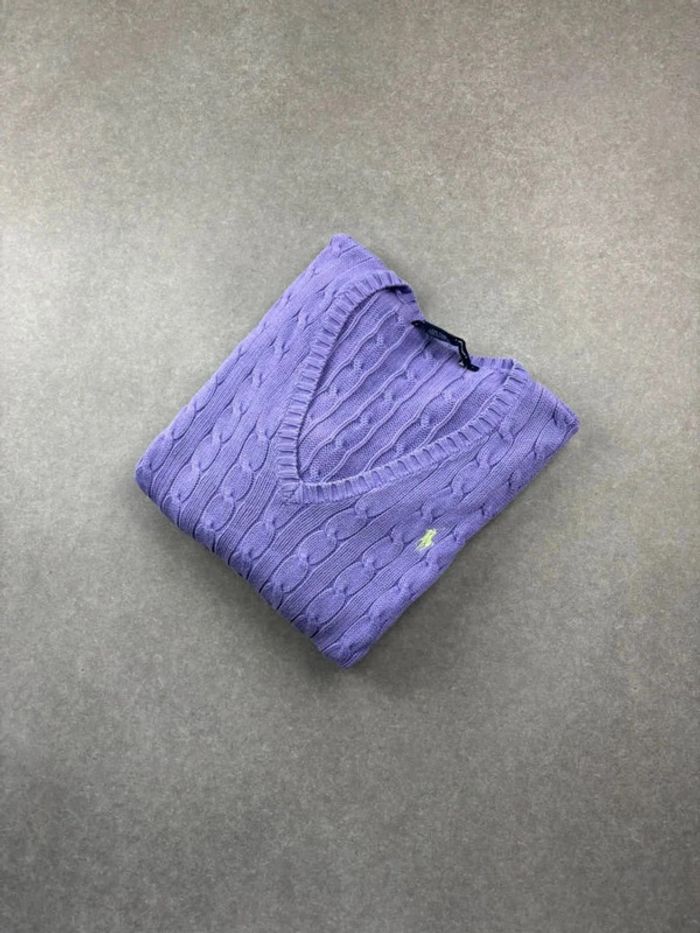 Pull d’hiver torsadé en maille Ralph Lauren col V violet Lila taille L femme - photo numéro 5