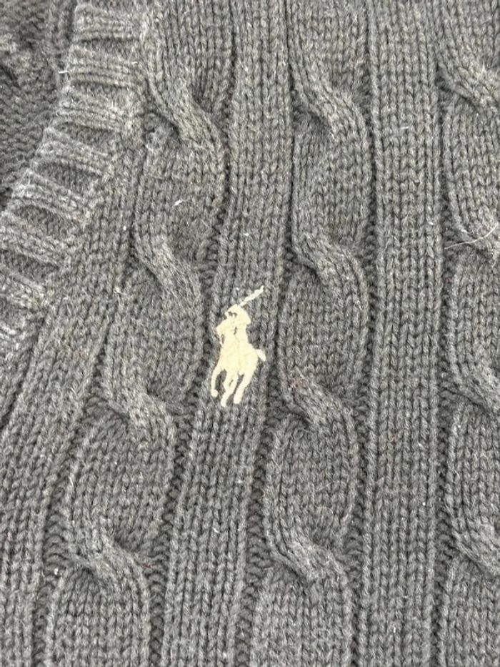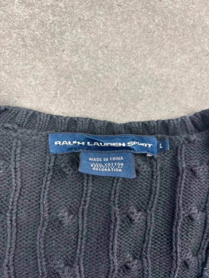 Pull d’hiver torsadé en maille Ralph Lauren noir logo blanc col V taille L femme - photo numéro 9