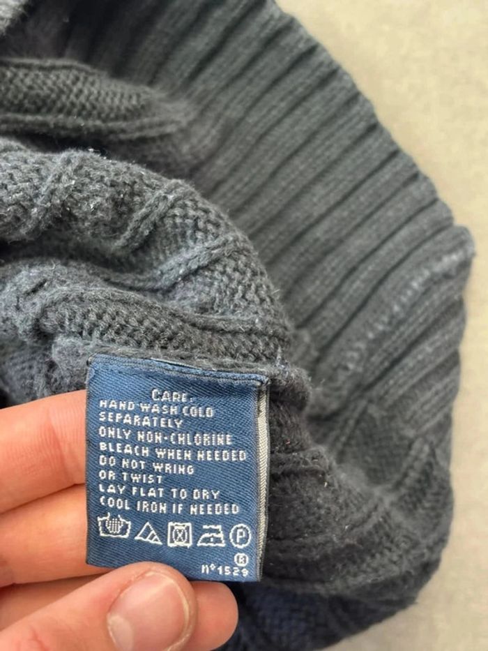 Pull d’hiver torsadé en maille Ralph Lauren noir logo blanc col V taille L femme - photo numéro 10
