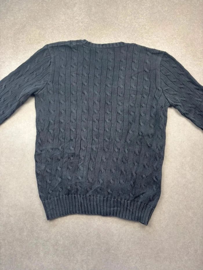 Pull d’hiver torsadé en maille Ralph Lauren noir logo blanc col V taille L femme - photo numéro 8