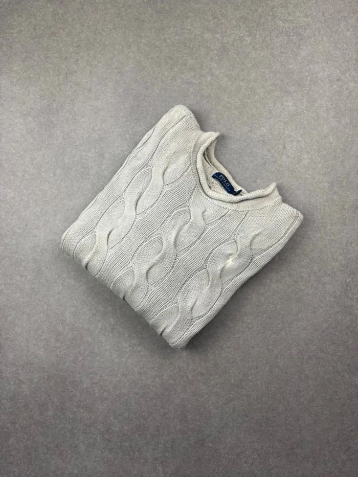 Pull d’hiver torsadé en maille Ralph Lauren gris col rond taille XS - photo numéro 11