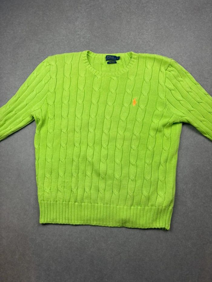 Pull d’hiver torsadé Ralph Lauren vert clair en pima Cotton col rond taille XL - photo numéro 1