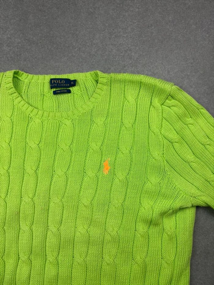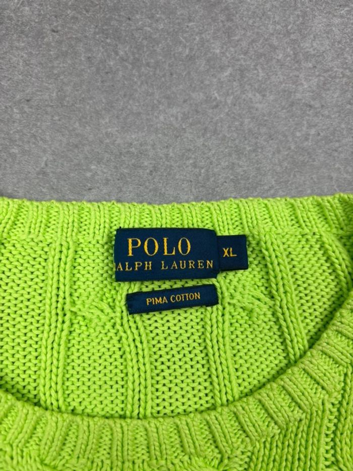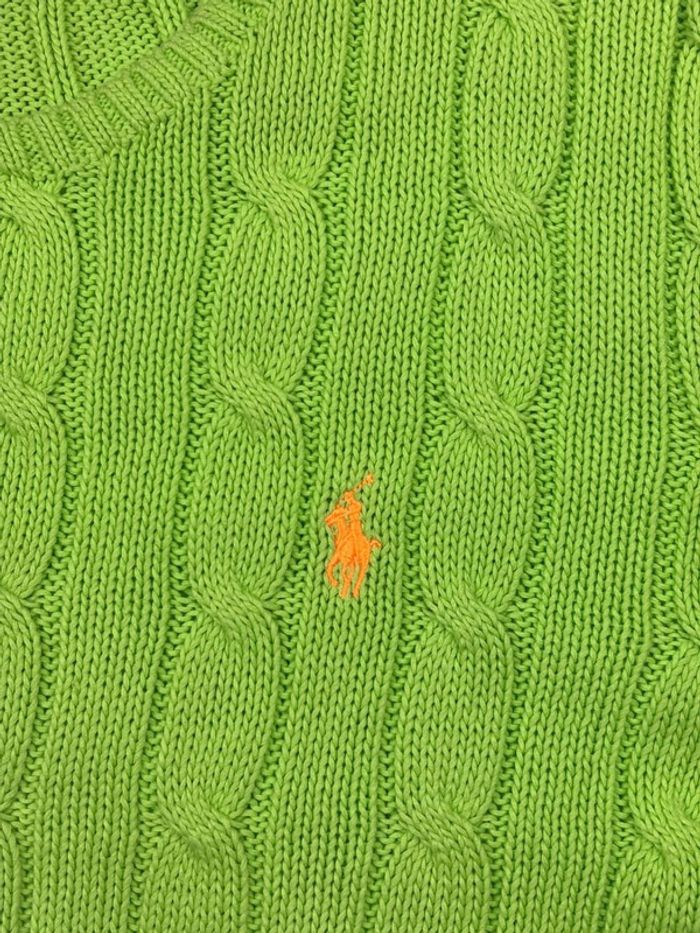 Pull d’hiver torsadé Ralph Lauren vert clair en pima Cotton col rond taille XL - photo numéro 9