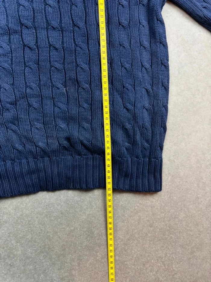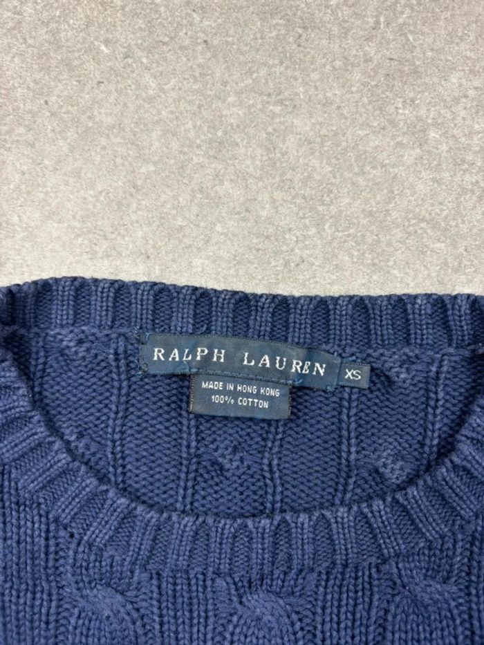Pull d’hiver torsadé en maille Ralph Lauren bleu marine logo blanc col rond taille XS - photo numéro 12