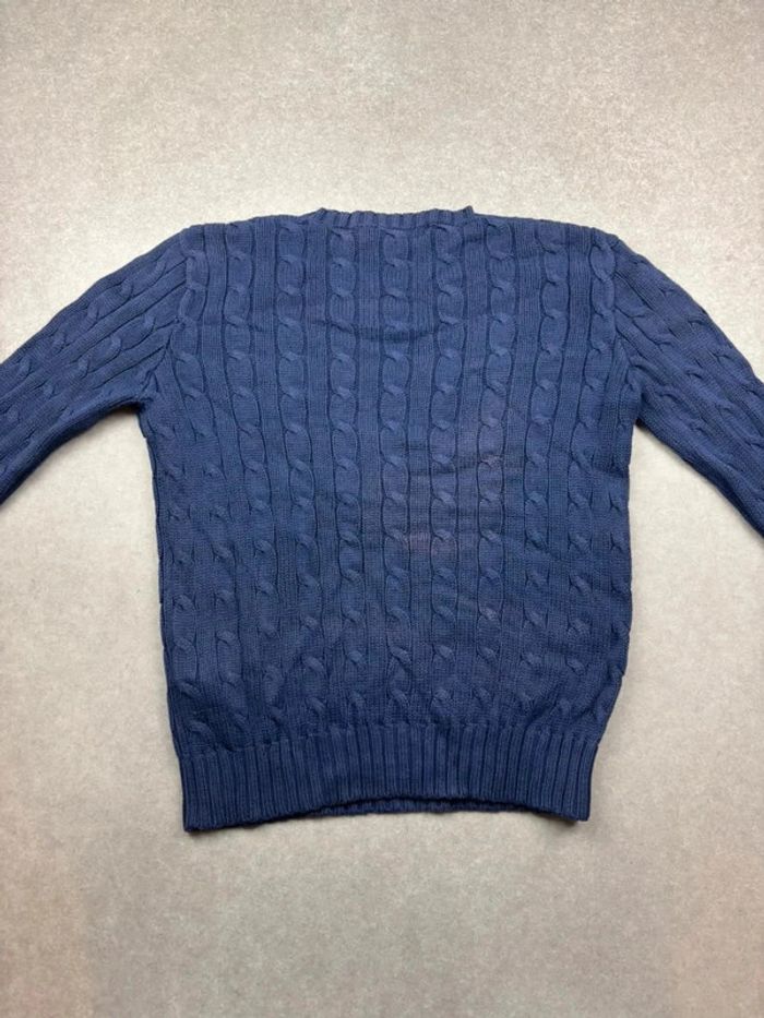 Pull d’hiver torsadé en maille Ralph Lauren bleu marine logo blanc col rond taille XS - photo numéro 8