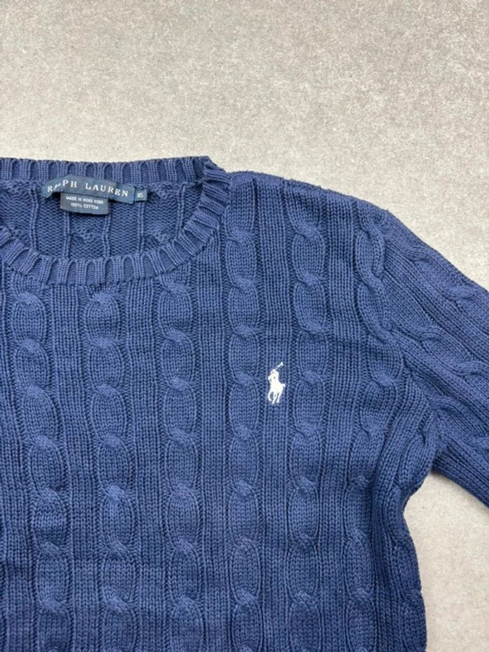 Pull d’hiver torsadé en maille Ralph Lauren bleu marine logo blanc col rond taille XS - photo numéro 5