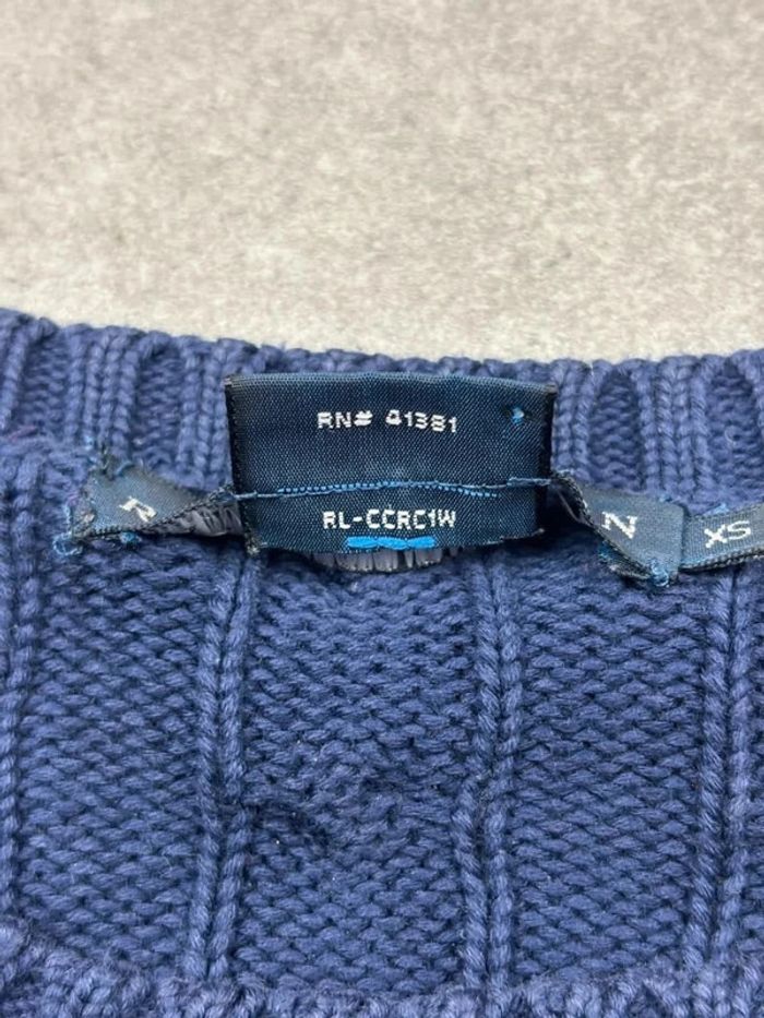 Pull d’hiver torsadé en maille Ralph Lauren bleu marine logo blanc col rond taille XS - photo numéro 11