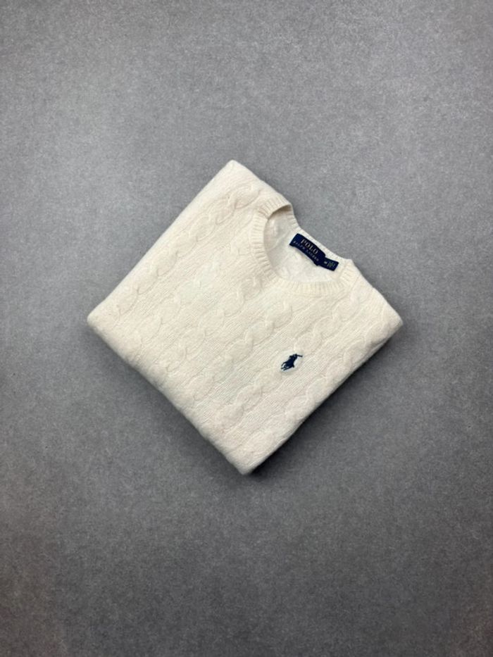 Pull d’hiver torsadé Ralph Lauren en laine et cachemire blanc col rond taille XS femme - photo numéro 1
