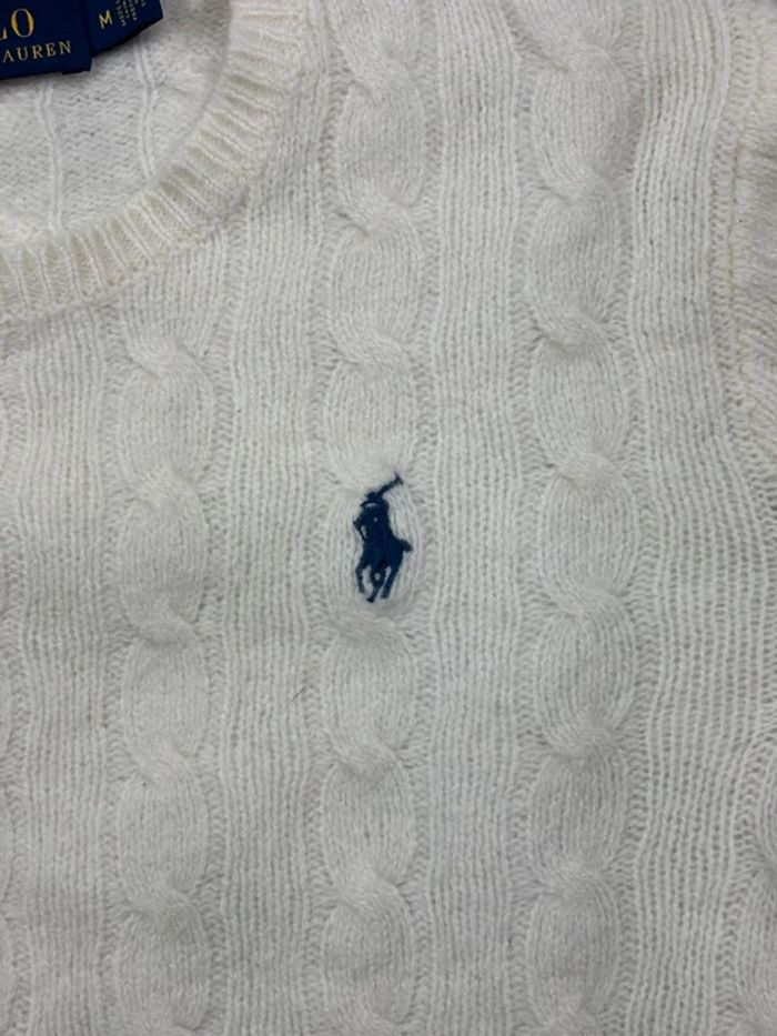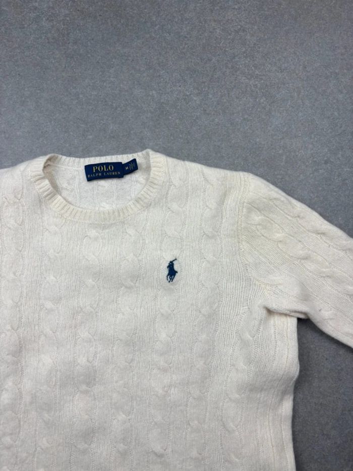 Pull d’hiver torsadé Ralph Lauren en laine et cachemire blanc col rond taille XS femme - photo numéro 3
