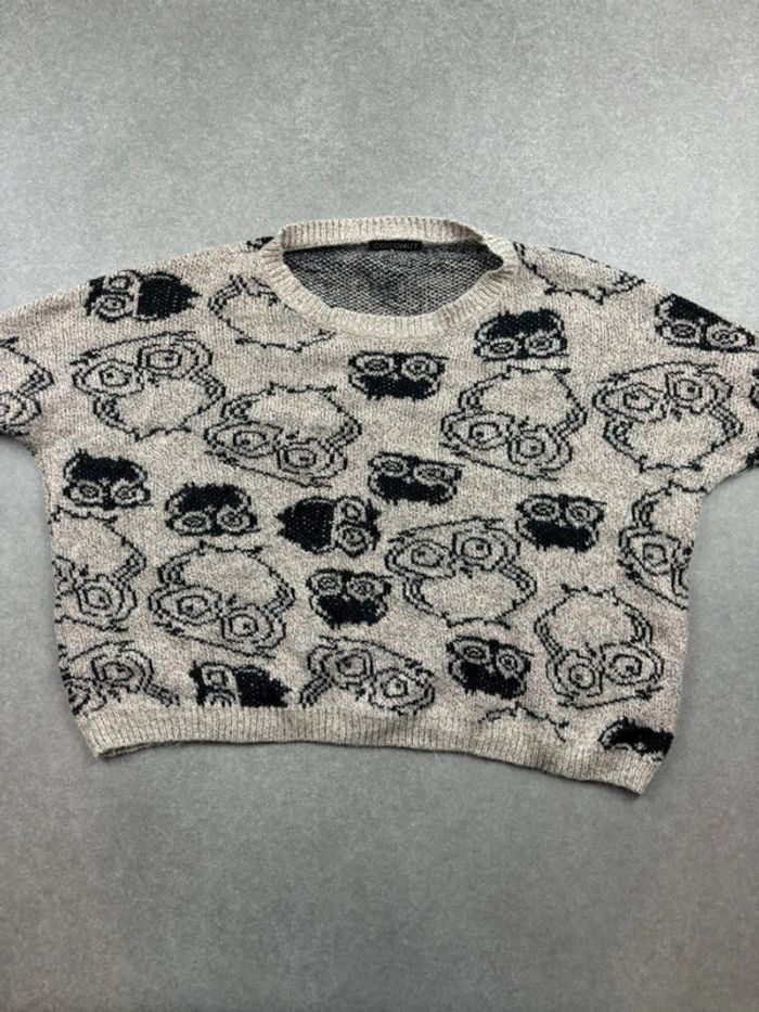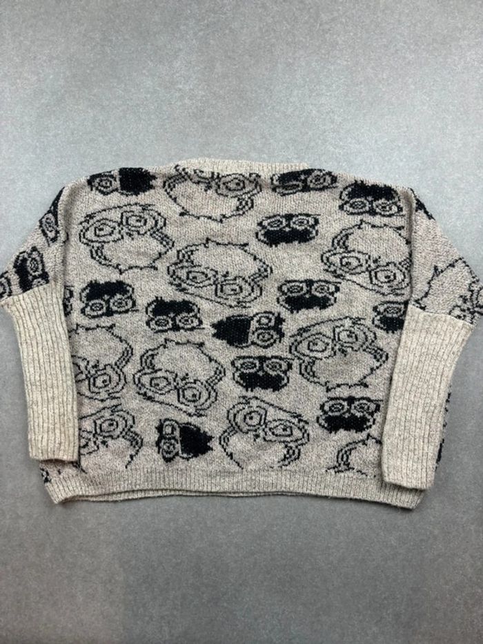 Pull sweat vintage à motif coogi style crème/noir en laine made in España - photo numéro 7