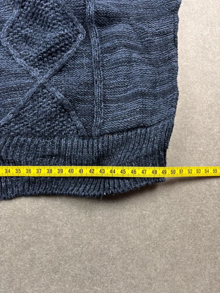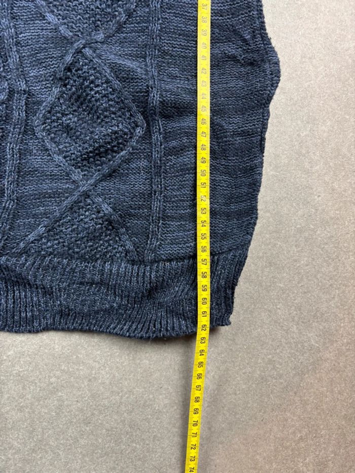 Pull vintage torsadé cable knit bleu col rond - photo numéro 4