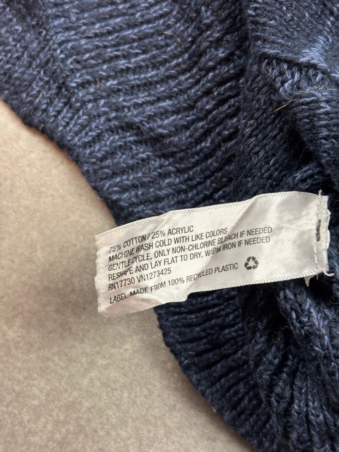Pull vintage torsadé cable knit bleu col rond - photo numéro 2