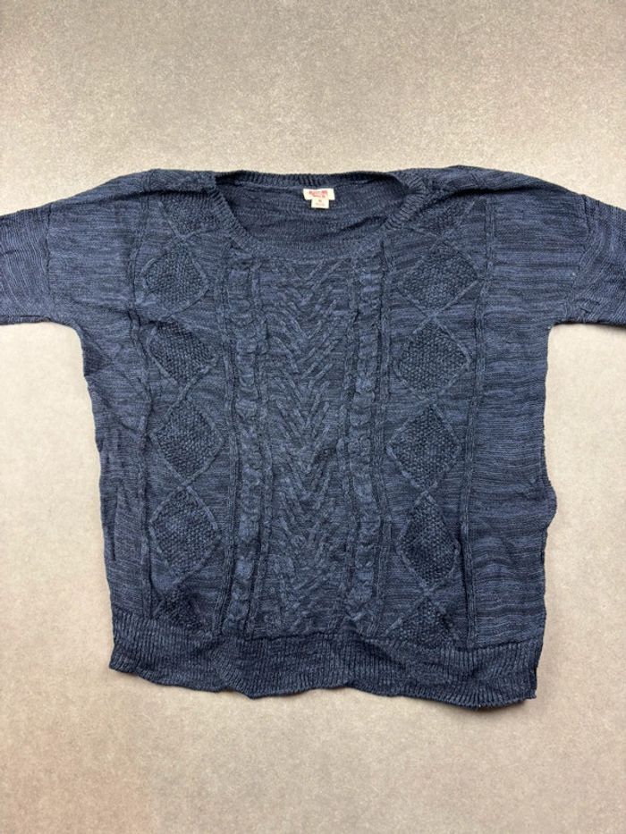 Pull vintage torsadé cable knit bleu col rond - photo numéro 1