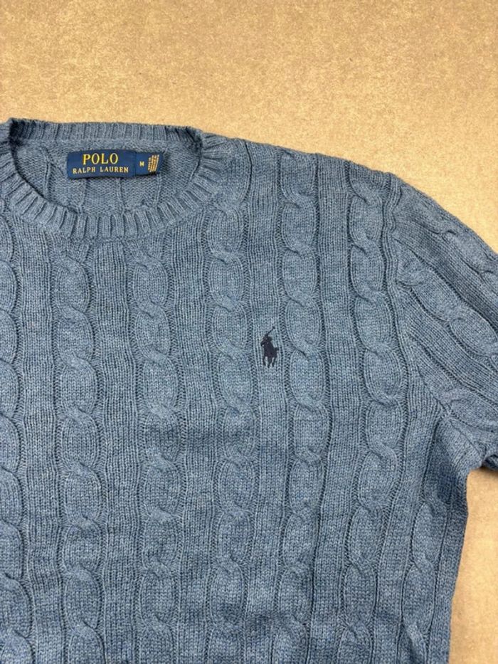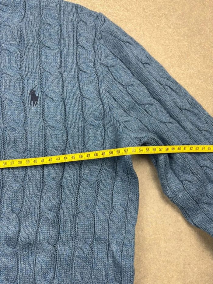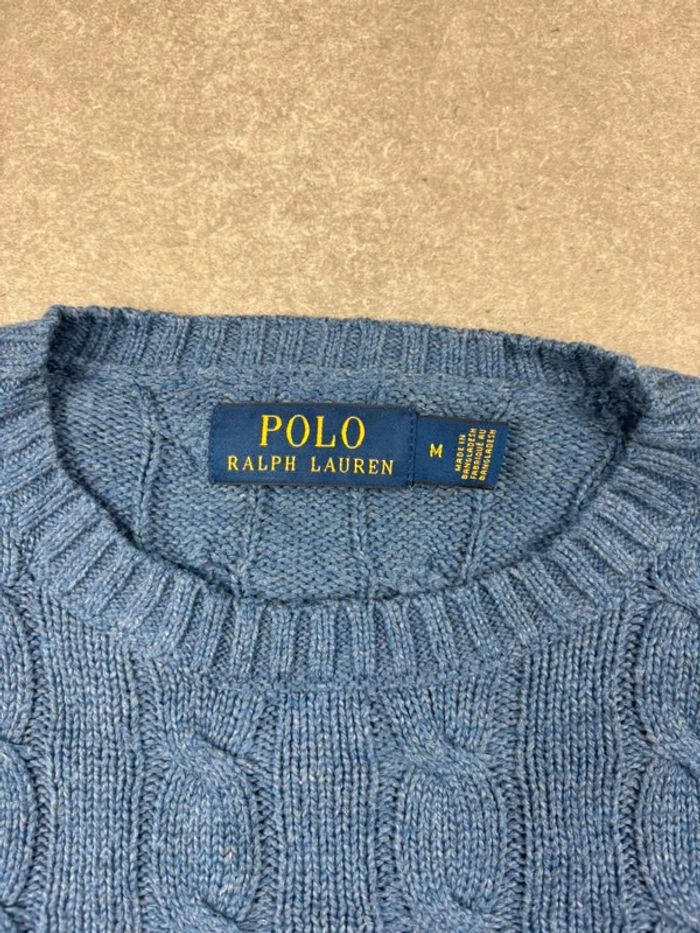 Pull d’hiver torsadé en maille Ralph Lauren bleu col rond taille M - photo numéro 11