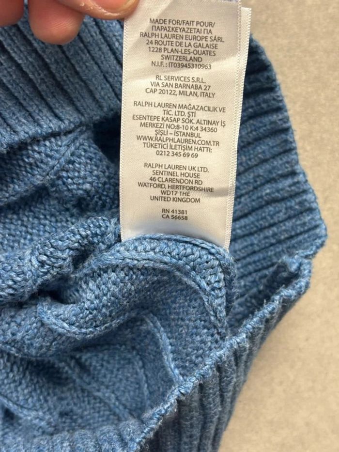 Pull d’hiver torsadé en maille Ralph Lauren bleu col rond taille M - photo numéro 13